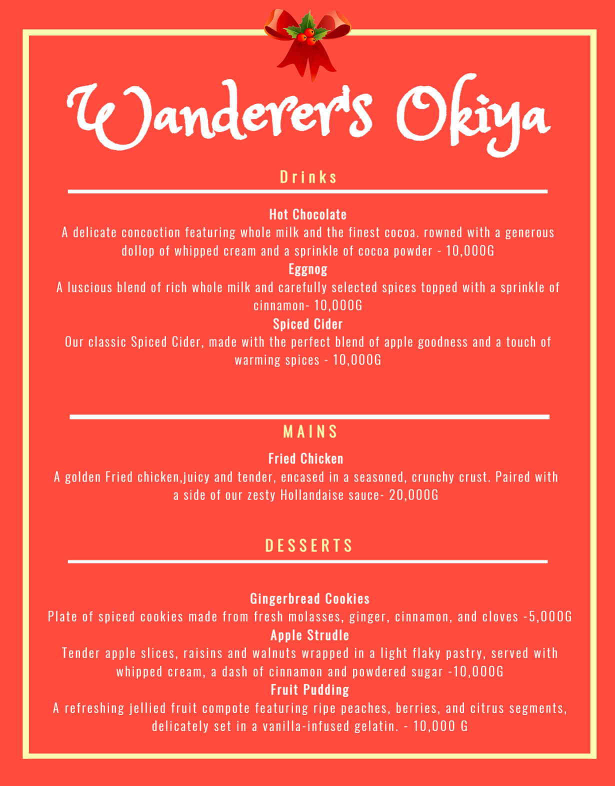 • The Wanderer's Okiya is reserved for those who are 18+. Minors are not allowed and will be subject to removal from the venue.